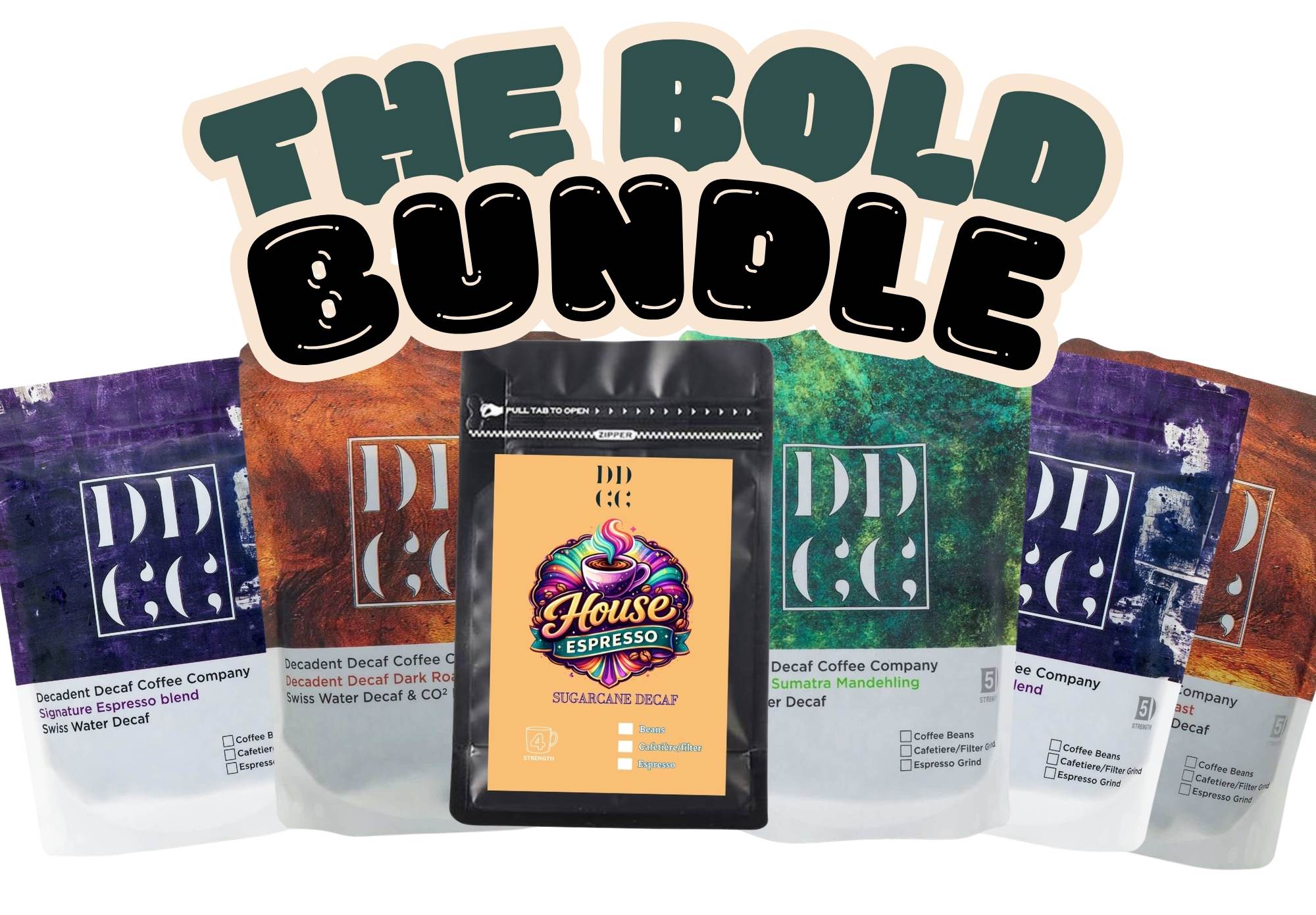 Swiss Water Decaf Bold Bundle - 6 Strong Decaf Coffees - Strength 5